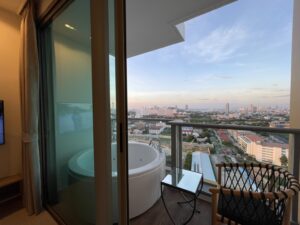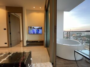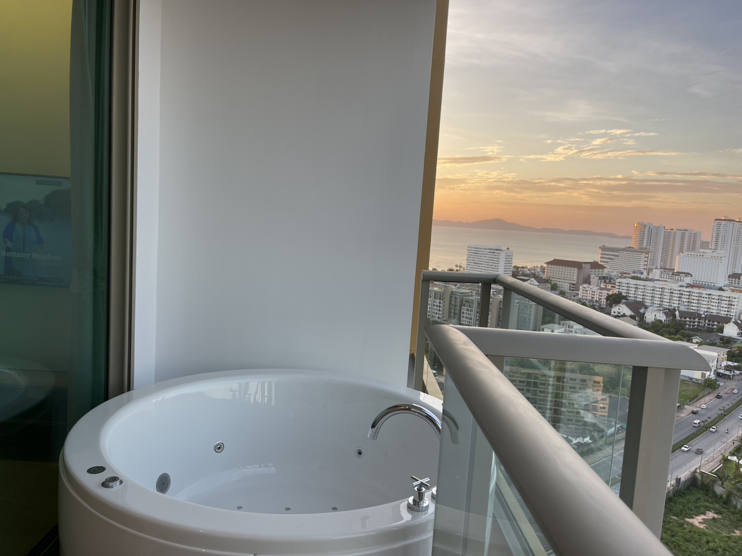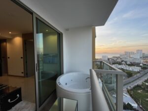 ให้เช่าห้องสวยพร้อมอ่างจากกุซซี่บนระเบียง คอนโดใกล้ทะเลจอมเทียน และหาดจอมเทียนเพียงไม่นาน
